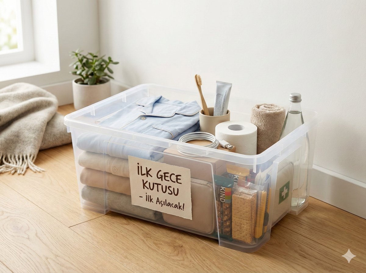 Yeni eve vardığınızda yorgunluktan bitkin olacaksınız. Tüm kolileri açma enerjiniz olmayacak. İşte o anda "İlk Gece Kutusu" hayat kurtarıcınız olacak.